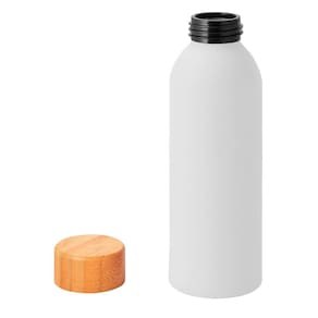 Possui acabamento Emborrachado e Tampa em Bambu.