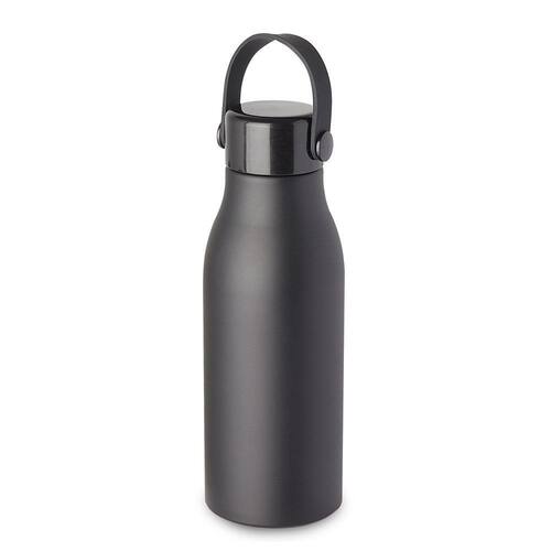 Garrafa em alumínio, tampa em plástico com alça na cor do produto. Capacidade de 550ml, pintura fosca.