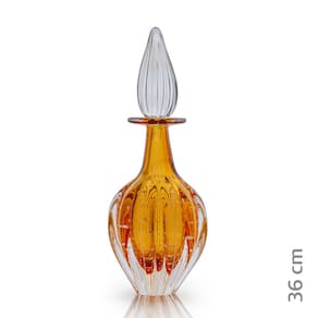 Garrafa Em Cristal Murano Ambar São Marcos Comprimento:14cm Largura:14cm Altura:36cm Peso:3240g Produzida 100% artesanalmente com a técnica secular e originária da Itália, a qual com muita maestria e criatividade são desenvolvidas e preservadas no Brasil pela Cristais São Marcos desde 1962. As escolhas das peças são versáteis e podem ser usadas para decorar casas e ambientes dos mais variados estilos. A tradição do Cristal Murano e a inovação em detalhes, formas e cores, trazem requinte para a decoração. O colorido do Muranoem especial, torna-se um coringa na decoração e produzem um efeito muito bonito em locais com luz natural, não dependendo de nenhum outro elemento para se destacar. As peças em Cristal Murano, são atemporais, aposte nelas como a estrela da decoração ou ainda para harmonizar em combinações com diferentes artigos para compor um ambiente. Junto com as peças em Murano, leve ainda um pouco de história. Uma dica é misturar diferentes Muranos e criar sua coleção de arte particular. O cristal Murano, tornou-se objeto de desejo por suas características únicas. Sendo assim, com todas essas particularidades, ele é uma ótima escolha para decorar, colecionar e ainda presentear com classe e sofisticação. Ean: 7894728691755