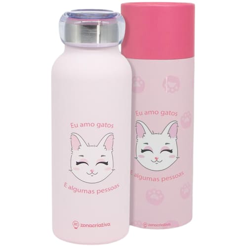 Garrafa Eu Amo Gatos Gatas Gatinhos Térmica 6 Horas Quente Gelada 500m + Embalagem Presente!
