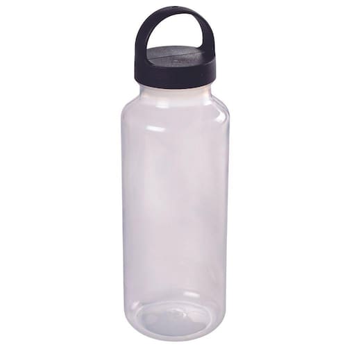 Garrafa Fitness com alça fixa e tampa de rosca 600ml, produzida em polipropileno transparente de alta durabilidade.