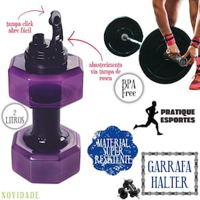 Garrafa plástica com capacidade para 2 litros, em formato de halteres de academia, com tampa abre fácil e alça de transporte. O desenho da garrafa foi desenvolvido para proporcionar um encaixe perfeito e uma pegada firme entre as extremidades mais largas do produto. A Garrafa Halter com a generosa capacidade para 2 litros é lançamento da Plasútil e foi pensado especialmente nos entusiastas do esporte, já que conta com uma aparência inspirada em artigos esportivos, além de um visual clássico, atemporal e exclusivo. A garrafa Halter é companheira ideal para quem leva a sério a hidratação do corpo e busca incansavelmente por um estilo de vida ainda mais ativo.