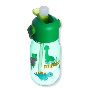 Garrafa Flip Dinossauro 400ml Squeeze Infantil Com Canudo