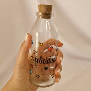 Garrafa Frasco Vidro Decorativa Felicidade Presente Transforme seu ambiente com delicadeza e boas energias! Garrafa/Frasco de Vidro Decorativa Felicidade é perfeita para compor a decoração da sua casa, escritório, altar ou até mesmo para presentear alguém especial. - Material: Vidro resistente e elegante- Detalhe: Estampa/tema Felicidade , trazendo boas vibrações- Uso: Decoração de ambientes, presentes criativos, lembranças especiais- Versátil: Pode ser usada em salas, quartos, escritórios, altares ou eventos.