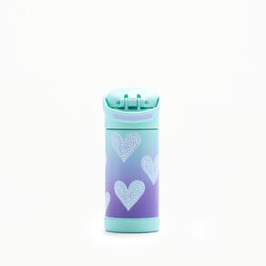 Conteúdo: 1 Garrafa Thermos Funtainer F410 com tampa, alça e canudo de silicone (substituível).