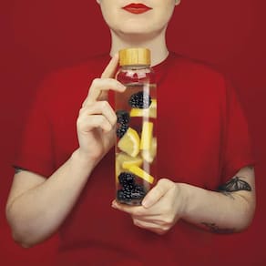 Garrafa Go Green 600 Ml Mor Para diminuir o impacto no meio ambiente e se manter hidratado, adote uma Garrafa Go Green Ela traz estilo e praticidade para seu dia a dia e tem capacidade para 600ml, tendo o tamanho ideal para ficar pertinho de você. Com o corpo em vidro e tampa em bamboo, a garrafa possui um bocal largo, ideal para colocar frutas e saborizar sua água. A parte interna da tampa em polipropileno e silicone, livre de BPA, evita vazamentos, possibilitando fácil transporte. Junte-se ao movimento verde! Dimesões: 6,5 x 24 cm Material: vidro, bambu, polipropileno e silicone Livre de BPA Ean: 7896020680819