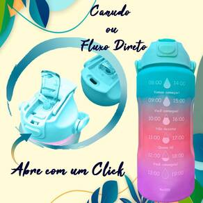 - Alça para carregar - Anti Vazamento - Alça com suporte para celular - Marcação de horários com frases motivacionais - Adesivos para personalizar - Bico com canudo ou fluxo direto
