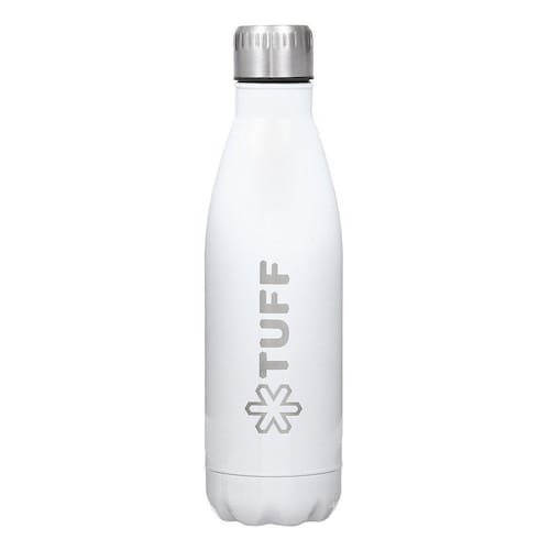 Garrafa Tuff fabricada em aço inox com pintura brilhante na cor Branca com capacidade para 750ml e tampa com rosca.