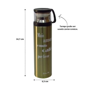 GARRAFA ISOTÉRMICA DE INOX COM FRASE E TAMPA COM COPO PARA SERVIR- 450 ML - GDR0085