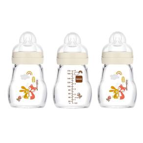 MAM Garrafa de vidro premium Feel Good Slow Flow, fácil de alternar entre o peito e a mamadeira, 142 g, 0+ meses, unissex, pacote com 3 - VIDRO PREMIUM: Feito de vidro resistente à temperatura de alta qualidade, a mamadeira pode ser aquecida, limpa na máquina de lavar louça e esterilizada em altas temperaturas. - Tampa de poeira: a tampa de poeira à prova de derramamento para bebês protege a mamadeira da sujeira e funciona como um copo medidor até mesmo para as menores quantidades, graças à sua escala integrada. - Amamentação livremente, um bico de silicone alongado, projetado como um mamilo, facilita uma transição fácil entre amamentação e mamadeira, apoiando a ligação mãe-bebê. - Garrafa livre de BPS/BPA: todas as mamadeiras MAM Feel Good são 100% livres de BPA e BPS, tornando-as ideais para alimentação do bebê, paz de espírito para os pais e um começo de vida ideal para bebês. - DETALHES DO PRODUTO: Garrafa de vidro premium MAM Feel Good, 142 g, 0+ meses, unissex, pacote com 3