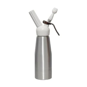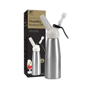 Garrafa para chantilly e espumas Standart CP 500 ml FPRO Acompanha: 10 cápsulas de gás. Descubra maneiras deliciosas de finalizar bebidas e sobremesas . Preparo rápido, chantili firme e duradouro. Com a garrafa para chantilly Fpro você prepara deliciosas receitas frias para chantili, cremes aerados, mousses, espumas e molhos de forma prática e versátil. Ideal para incrementar sobremesas, sorvetes, milk shakes, cappuccinos e cafés. Revestimento interno da garrafa em Teflon, facilitando a limpeza. Modo de preparo do chantili: - verificar se a garrafa está bem montada. Para melhor resultado, resfrie a garrafa. - colocar 500 ml de chantili de sua preferência; - fechar bem a garrafa - Coloque a ampola de gás com a garrafa invertida para melhor homogenização. - Agitar bem a garrafa e utilizar. Características: - composição: alumínio e plástico - marca: FPRO - cor: Prata - capacidade: 500 ml - altura: 32 cm - diâmetro: 8 cm - peso: 580 g Contem: - garrafa 500 ml; - porta cápsula; - 1 bico plástico liso; - 1 bico plástico tulipa; - 1 bico plástico reto - 1 escova para limpeza; - 1 manual de instruções. - 10 cápsulas de gás.