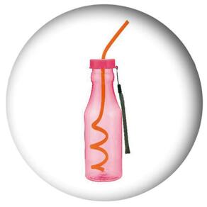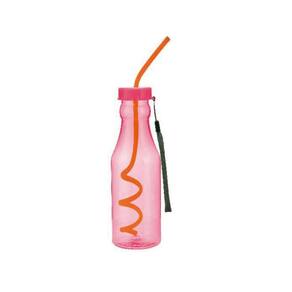 Garrafa Plástica Com Canudo Espiral 550ml Rosa 91rs