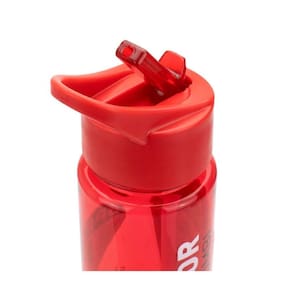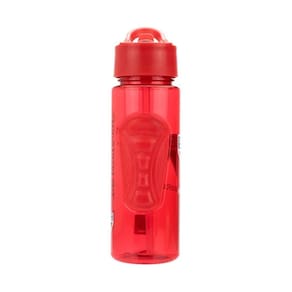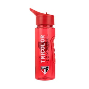 Garrafa de plástico com canudo retrátil usualmente usado para academia. Capacidade para 700 ml, com a tampa que rosquei e apoio para dedos. Aperte a garrafa para tornar o jato mais forte. Na cor do São Paulo FC com escudo do time.