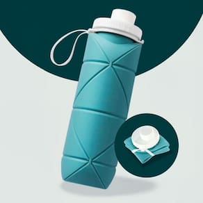 As garrafas são herméticas e fáceis de dobrar reduzindo o tamanho da garrafa em mais de 80%. O formato cilíndrico da garrafa torna-o resistente e fácil de segurar. Projetado para facilitar o transporte da garrafa na mochila.