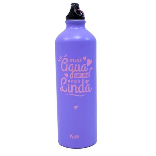 Garrafa Roxa Alumínio Linda 750Ml - Projeto Kiwi Garrafa roxa de 750 ml gravada com a frase mais água para ficar mais linda. Tampa rosqueável com prendedor paa mochila. Material: alumínio Medidas aproximadas do produto - Altura: 15 cm - Largura: 15 cm - Peso: 300 g