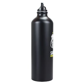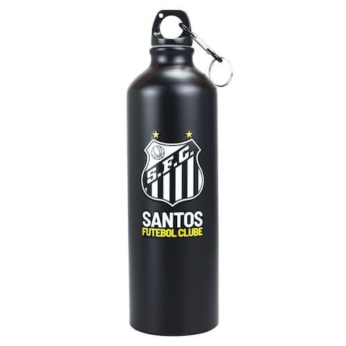 Garrafa em alumínio 750 ml com mosquetão. Garrafa com capacidade para 750ml, com tampa de rosca. Uma ótima dica para presentear aquele seu amigo do Santista. Produto oficial licenciado.