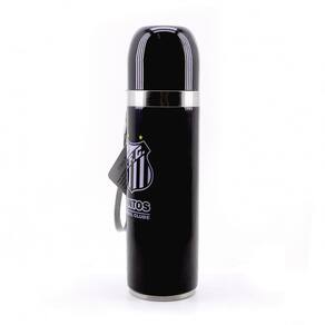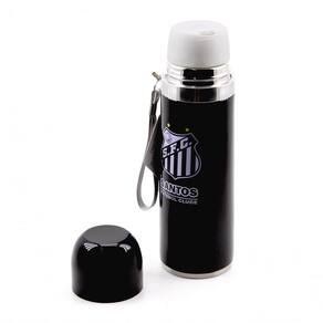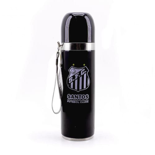 Garrafa térmica 500 ml. Garrafa com capacidade para 500ml, com tampa de rosca e que também serve como copo pois não é possível beber direto na garrafa. Uma ótima dica para presentear aquele seu amigo Santista. Produto oficial licenciado.