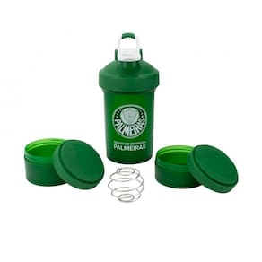 garrafa shakeira 500 ml, com dois compartimentos com tampas de rosca com medidas em 3x7,5cm e 4x 7,5cm, no interior da garrafa tem uma mola blender para misturar melhor a bebida e deixar ela mais cremosa. Produto oficial licenciado. Uma ótima dica para presentear aquele seu amigo palmeirense. Informações adicinais: