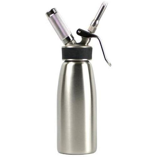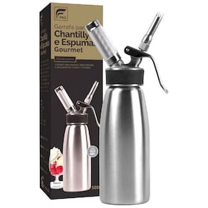 Garrafa para chantilly e espumas gourmet 500 ml FPRO Descubra maneiras deliciosas de finalizar bebidas e sobremesas . Preparo rápido, chantili firme e duradouro. Com a garrafa para chantilly gourmet você prepara deliciosas receitas frias para chantili, cremes aerados, mousses, espumas e molhos de forma prática e versátil. Ideal para incrementar sobremesas, sorvetes, milk shakes, cappuccinos e cafés. Modo de preparo do chantili: - verificar se a garrafa está bem montada. Para melhor resultado, resfrie a garrafa. - colocar 500 ml de chantili de sua preferência; - fechar bem a garrafa - Coloque a ampola de gás com a garrafa invertida para melhor homogenização. - Agitar bem a garrafa e utilizar. Características: - marca: FPRO - 100% inox - capacidade: 500ml - altura: 25 cm - diâmetro: 7,5 cm - peso: 970 g Contem: - garrafa inox 500ml - porta capsula inox - 3 bico inox para aplicação - 1 escova para limpeza