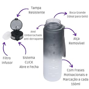 De Material de alta qualidade, essas garrafas são as mais completas do mercado. Livre de BPA, que é o composto químico que prejudica sua saúde, encontrado em outras garrafas. A Nossa foi feita pensando especialmente na sua saúde