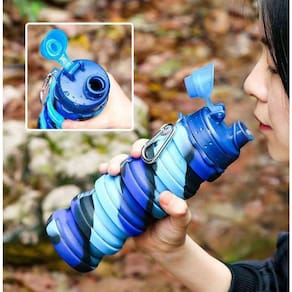 Garrafinha Squeeze dobrável feita de silicone, cores vivas, 500ml na forma aberta ou 225ml quando fechado. Super prático para viagem ou para sua prática esportiva.