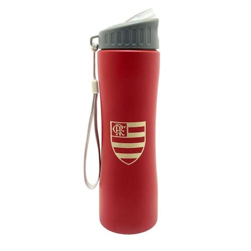 Garrafa Squeeze em alumínio com tampa de plástico rosqueável e bico articulado transparente. Uma ótima dica para presentear aquele seu amigo Rubro-negro. Gravado a laser. Produto oficial licenciado.