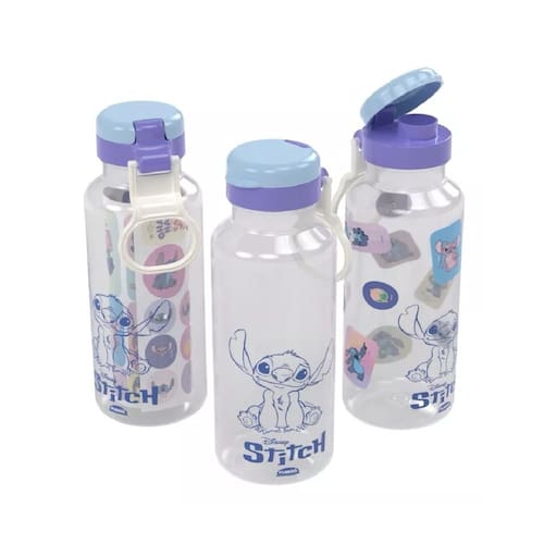 Garrafa Fun Abre Fácil Stitch 600 Ml Com Cartela de Adesivo Plasútil - Personagem | Fofo (Unidade)
