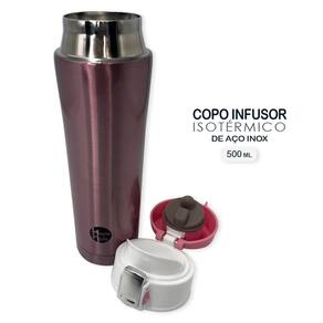 ESPECIFICAÇÕES: -Tamanho: 23cm altura x 6,5cm diâmetro -Peso: 300g (aprox.) -Material: Aço Inox -Capacidade: 500ml -Cor: Rosa