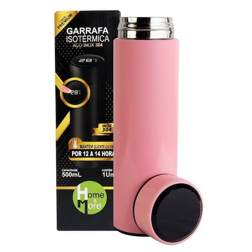 CONTÉM: 01 Garrafa Isotérmica em Aço Inox 500ml - Rosa Marca: Home&More
