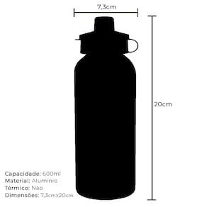 Características:Material: AlumínioCapacidade: 600mlTipo de tampa: Bico RosqueávelTérmico: Não Acompanha duas tampas.