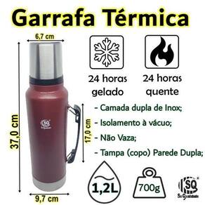 Adquira agora mesmo a Garrafa Térmica 1,2L Dupla Camada Inox Vácuo 24H Quente Frio e mantenha suas bebidas na temperatura ideal por muito mais tempo. Não perca essa oportunidade!