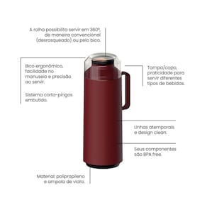 Perfeita para armazenar suas bebidas preferidas, sejam elas quentes ou frias, ela conta com ampola de vidro e corpo em Plástico com design moderno que garante leveza e segurança.