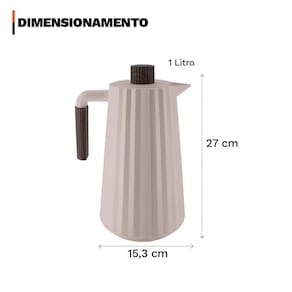 Distribuído por feheros shop Garrafa térmica 1 litro café chá premium click abre fecha Atenção A garrafa térmica 1 litro é perfeita para conservar suas bebidas quentes ou frias por mais tempo, com eficiência e estilo. Seu design elegante e acabamento fosco combinam com diversos ambientes, como escritório, cozinha ou área gourmet. Com capacidade de 1 litro, é ideal para uso diário em casa ou no trabalho. Fabricada com materiais de alta qualidade e livre de bpa, conta com vedação eficiente e alto desempenho térmico. Não utilizar com bebidas gaseificadas, leite ou derivados, pois podem gerar pressão interna e comprometer a vedação. Produto não compatível com micro-ondas, freezer, geladeira ou lava-louças. Para melhor desempenho, siga as instruções de uso e conservação. Informações do produto Ideal para quem busca um produto funcional e estiloso, a garrafa térmica mantém café, chá ou outras bebidas na temperatura ideal por horas. Seu acabamento fosco é elegante e transforma qualquer ambiente em um espaço mais acolhedor e charmoso. Para começar bem o dia ou servir com charme uma visita especial, essa garrafa une funcionalidade com um toque de sofisticação. A tampa com abertura click permite o uso com uma só mão, oferecendo agilidade e segurança. O bico com sistema antigotejamento evita respingos e a tampa com vedação hermética mantém a temperatura e impede vazamentos. A base estável e o design ergonômico tornam o uso ainda mais confortável. Especificações técnicas - design elegante e funcional que combina com qualquer estilo de ambiente, ideal para uso doméstico ou - sistema click de abertura e fechamento com praticidade no uso e vedação eficiente que conserva a temperatura - isolamento interno de alta qualidade que conserva líquidos quentes por até 6 horas e frios por até 12 horas - materiais seguros e resistentes, feita em polipropileno atóxico com revestimento interno de vidro - acabamento premium com textura fosca que proporciona um toque sofisticado e moderno - versatilidade e conforto, ideal para café da manhã, reuniões, visitas e outras ocasiões - ideal para presentear aquela pessoa especial Ficha técnica do produto - altura total: 27 cm - diâmetro da base: 15,3 cm - peso: 650 g - capacidade: 1 l - material externo: polipropileno com acabamento fosco - material interno: ampola de vidro - tampa: sistema click e vedação hermética - alça: anatômica - bico: sistema antigotejamento - conservação: até 6 h para líquidos quentes e 12 h para líquidos frios - produto atóxico - cor garrafa kiara: bege - cor garrafa wooden: nude Antes e depois do primeiro uso - antes do uso: lave a garrafa com água morna e sabão neutro para remover resíduos de fábrica. Faça o pré-aquecimento com água quente ou o pré-resfriamento com água fria, conforme a bebida desejada, e deixe agir por alguns minutos. - após o uso: realize a limpeza manual com sabão neutro e esponja macia. Evite produtos abrasivos e não utilize máquina de lavar louças para garantir a durabilidade e a eficiência térmica. Itens inclusos no pacote - 01 garrafa térmica 1 litro café chá premium click abre fecha Todas as fotos são reais dos produtos. Qualquer dúvida, estamos à disposição Dúvidas frequentes 01 - a garrafa é nova Acompanha 03 - a garrafa mantém a bebida quente por quanto tempo A tecnologia de isolamento com vedação hermética mantém líquidos quentes por até 6 horas e frios por até 12 horas. 04 - a garrafa pode ser lavada na máquina de lavar louças Recomendamos a lavagem manual, com água morna e sabão neutro, para preservar o acabamento e a eficiência térmica. 05 - como faço para acompanhar o envio Você pode acompanhar pelo código de rastreamento fornecido após a confirmação do envio.