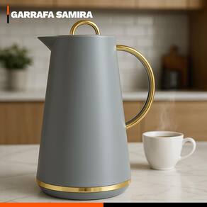 Garrafa Térmica 1L Samira Café Chá Click Abre Fecha - Cinza