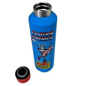 Especificações: Marca: Zona Criativa Modelo: CAPITÃO AMÉRICA - MARVEL Licenciador: DISNEY Altura: 24,5cm Largura: 6,5cm Comprimento: 6,5cm Capacidade: 600ml Material: Aço inoxidável Cor Predominante: Azul