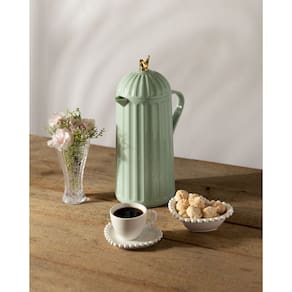 Características: Ampola em Vidro. Mantém a Bebida por até 6 horas Quente. Mantém a Bebida Fria por Até 8 Horas Altura: 30cm Largura da Base: 18cm Largura do Topo: 16cm Capacidade Liquida: 1 Litro Material : Plástico Cor: Menta