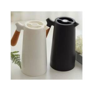 Garrafa termica branca nordica cabo madeira anti vazamento Cor: branca Garrafa térmica nórdica cabo de madeira botão anti vazamento
