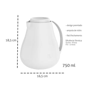 Contêm: 1 Garrafa Bule Térmico Capacidade: 750 ml Dimensão: 15 x 16,5 x 18,5 cm