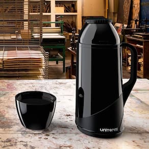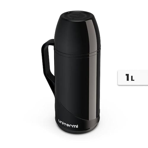 Garrafa de Chá Café Térmica 1 Litro Unitermi Preta Desfrute de bebidas quentes ou frias em qualquer lugar a garrafa térmica de alta qualidade. Mantenha seu café quente pela manhã ou água gelada durante o dia todo, com isolamento a vácuo de parede dupla que mantém a temperatura ideal por horas. Possui um design elegante e resistente, a garrafa térmica é perfeita para acompanhar você em suas aventuras ao ar livre ou trabalho. ESPECIFICAÇÕES: Material: Ampola de Vidro e demais peças em Plástico (PP) Peso Aprox.: 510g Dimensão: Altura: 29cm Profundidade: 12cm Largura: 17cm Cor: Preta Capacidade: 01 Litro CONTÉM: 01 Garrafa de Chá Café Térmica 1 Litro Preta