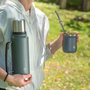 Garrafa Térmica Café Tererê Parede Dupla de Inox com Alça 1 Litro Everest Soprano Cinza. #Isolamento a vácuo e parede dupla de aço inox #Acabamento especial #Livre de BPA