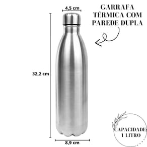 GARRAFA TÉRMICA DE INOX PAREDE DUPLA 1 LITRO - CA12396
