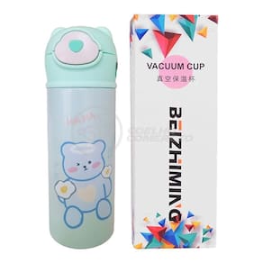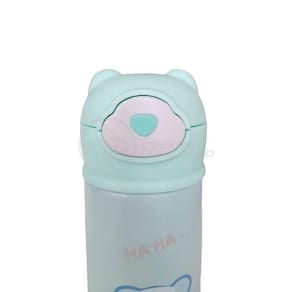 Garrafa Térmica De Ursinho Verde Infantil 420ml Com Trava De Tampa E Canudo De Silicone