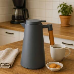 Garrafa Térmica para Café com Cabo de Madeira e Plástico, Design Moderno Cinza 1 Litro