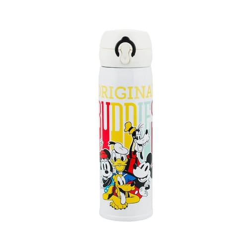 Feita em aço inoxidável na cor branca, essa garrafa térmica é estampada com o Mickey e seus amigos Pluto, Pateta, Pato Donald e a querida Minnie, deixando seu dia mais divertido e cheio de magia.
