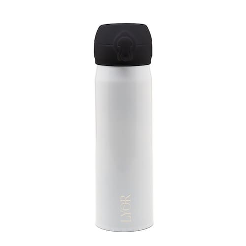 Garrafa Térmica Dupla Parede de Aço Inox com Tampa Flip Branca 410ml 4684 - Lyor - Dorémi Casa & Decor