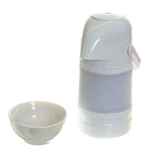 Economize trabalho e aposte na praticidade de ter água quentinha sempre à mão para limpar o bebê Essa garrafa térmica é produzida com matéria prima de excelente qualidade e resistência. Sem dúvidas, esse kit de garrafa com molhadeira é um item fundamental para o kit de higiene do bebê. Dados Técnicos01 Garrafa Térmica marca Termolar modelo Magic Pump 500 ml com capa de tecido e tiras aderentes.01 Molhadeira em porcelana branca MedidasGarrafa: 11 cm diâmetro x 25 cm alturaMolhadeira: 11,5 cm diâmetro x 5,5 cm altura