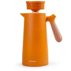 Garrafa Térmica Elegance Laranja 1 L TermoproA Garrafa Térmica Elegance Laranja 1 L Termopro mantém as bebidas quentes por até 6h e frias por até 12h, possui sistema de servir com um apenas “clique”, ampola de vidro exclusiva em cobre e cabo esculpido em madeira.
