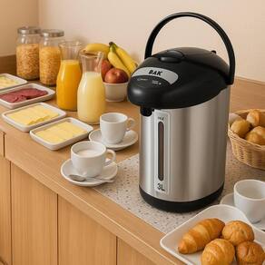 Garrafa Térmica Elétrica Inox Café Agua Automática 3 L 220v A Garrafa Térmica Elétrica Inox Café Água Automática de 3 litros da marca BaK é a solução ideal para manter suas bebidas na temperatura perfeita durante todo o dia. Com capacidade para 3 litros, esse modelo premium possui interior e exterior em aço inoxidável, garantindo durabilidade e resistência.