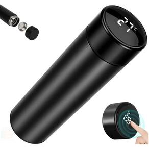 Especificações Técnicas: - Material: Aço Inoxidável - Display LED de Temperatura Inteligente - Alta Qualidade - Isolamento a Vácuo - Boa Vedação - Fácil de Limpar - Conserva Líquido Quente ou Frio - Capacidade: 500ml - Tamanho: 22,5cm x 6cm - Não necessita de recarga