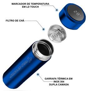 A Garrafa Térmica em Aço Inoxidável 304 Gold Sports Smart 500ml com bocal anatômico. Muito eficiente na conservação da temperatura de bebidas geladas ou quentes e também segura muito bem o gás de refrigerantes. A tampa, sem bem fechada, veda totalmente a garrafa, impedindo respingos e vazamentos, BPA FREE, confeccionada em dupla camadas de aço inoxidável - A Garrafa Térmica em Iaço inoxidável 304 Gold Sports Smart 500ml possui acabamento de altíssima qualidade, com uma incrível tela LED, localizada na tampa. sensível ao toque, ela te mostra, em tempo real, a temperatura interna da garrafa.